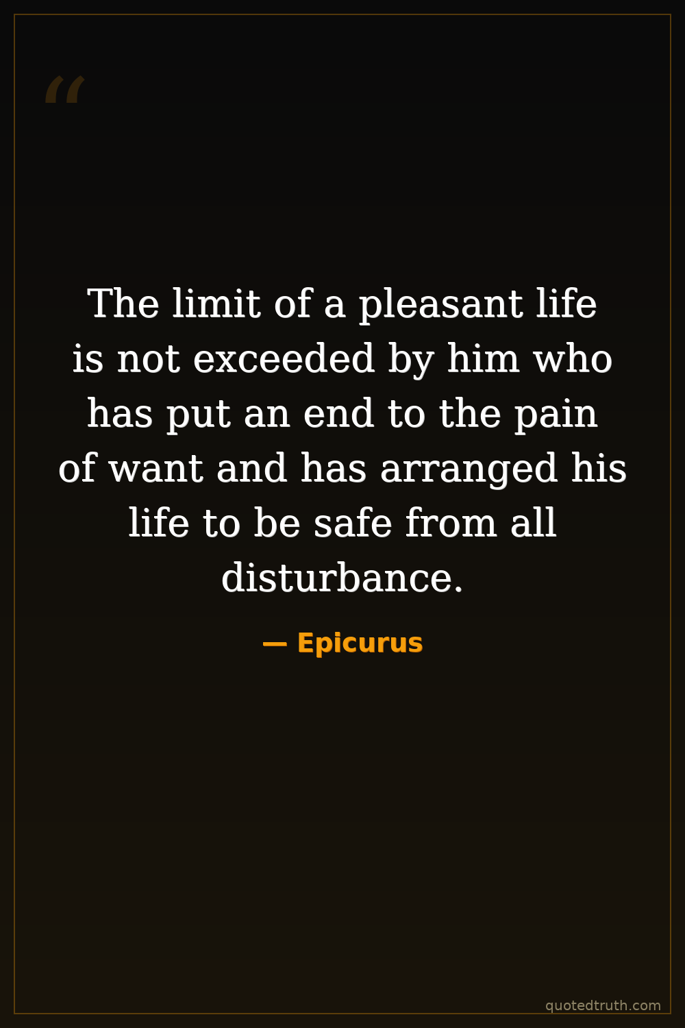 The limit of a pleasant life is not exceeded by him who has put an end to the pain of want and has arranged his life to be safe from all disturbance.
