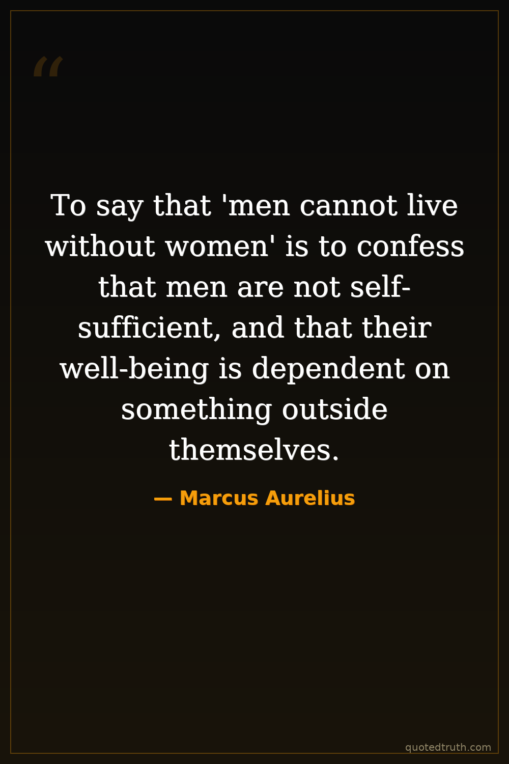 To say that 'men cannot live without women' is to confess that men are not self-sufficient, and that their well-being is dependent on something outside themselves.