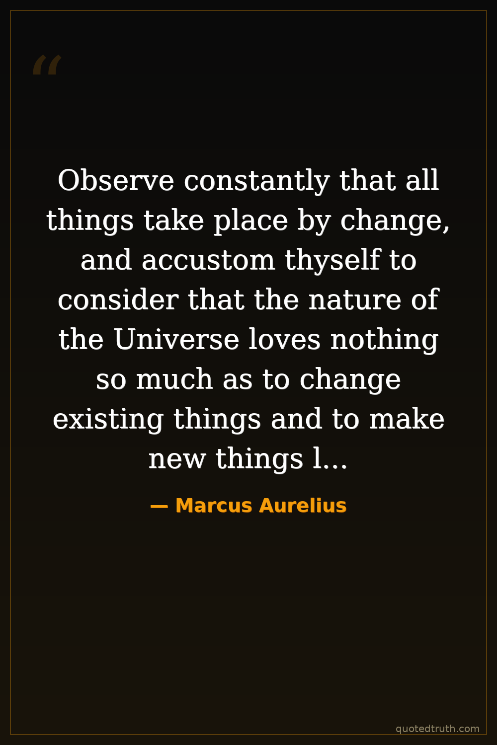 Observe constantly that all things take place by change, and accustom thyself to consider that the nature of the Universe loves nothing so much as to change existing things and to make new things like them. For everything that exists is in a manner the seed of that which will be. But thou art thinking only of seeds of earth and not of much nobler seeds.