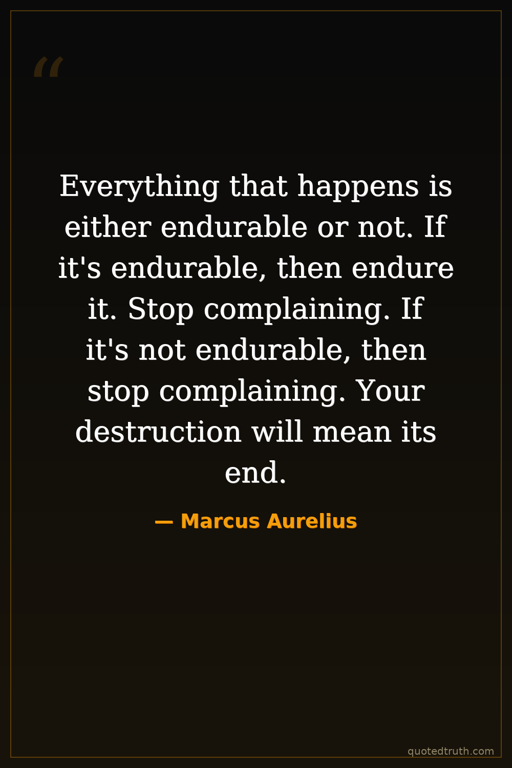 Everything that happens is either endurable or not. If it's endurable, then endure it. Stop complaining. If it's not endurable, then stop complaining. Your destruction will mean its end.