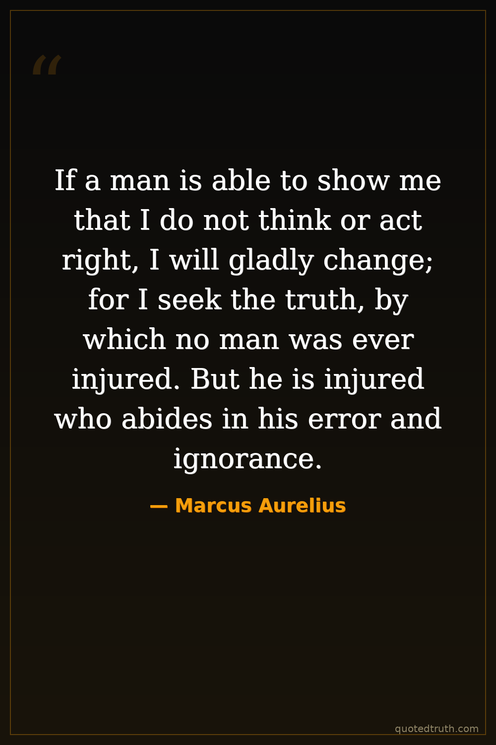 If a man is able to show me that I do not think or act right, I will gladly change; for I seek the truth, by which no man was ever injured. But he is injured who abides in his error and ignorance.