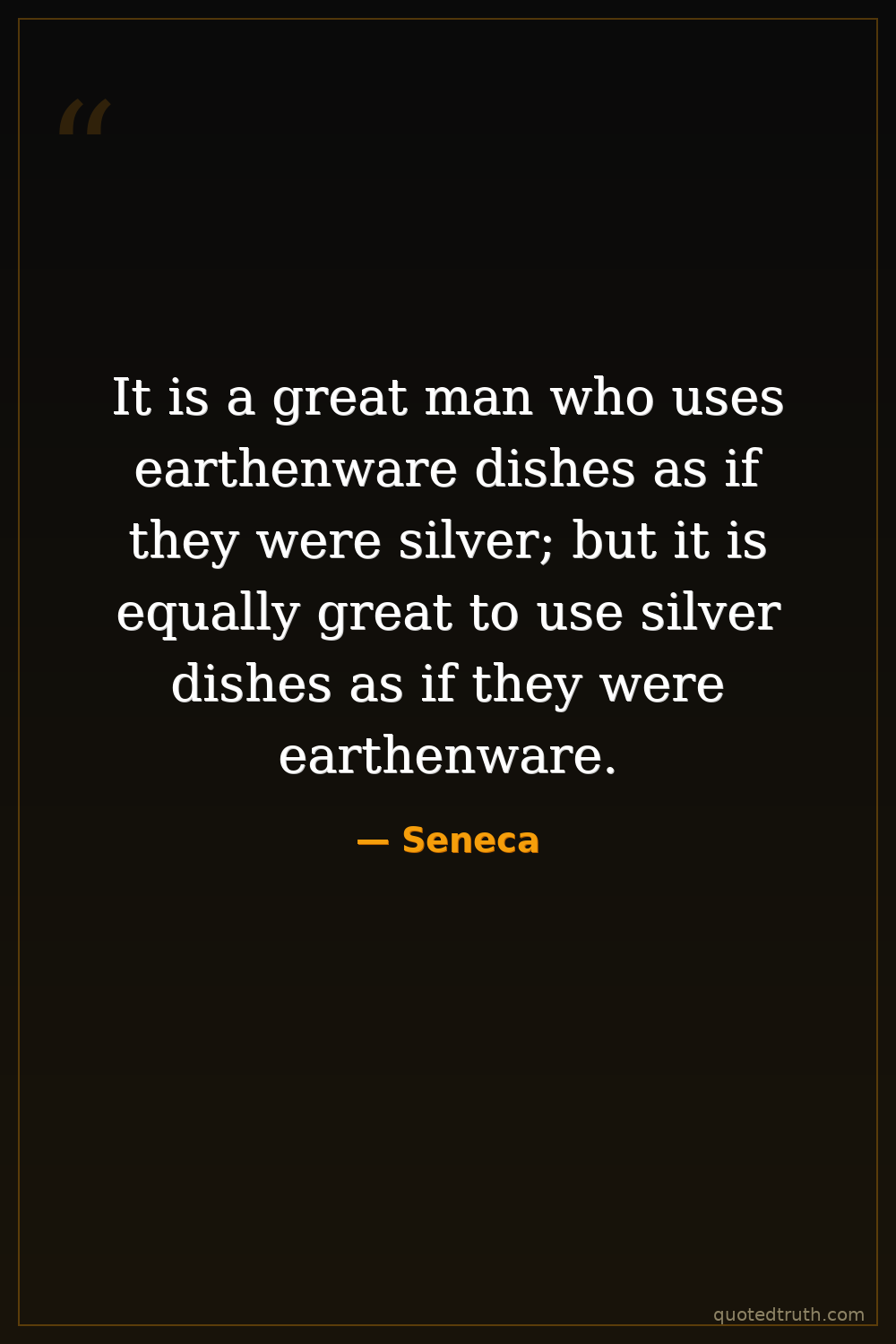 It is a great man who uses earthenware dishes as if they were silver; but it is equally great to use silver dishes as if they were earthenware.