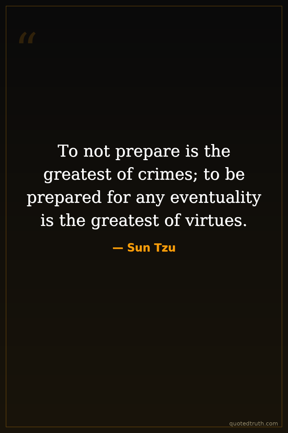 To not prepare is the greatest of crimes; to be prepared for any eventuality is the greatest of virtues.