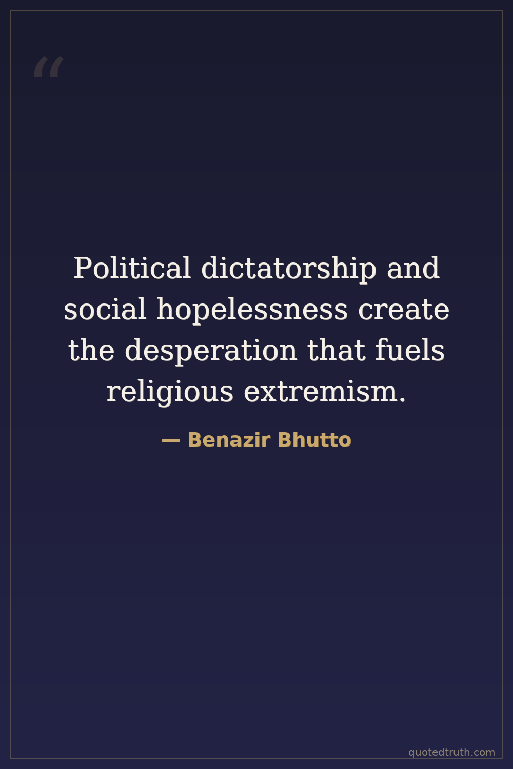 Political dictatorship and social hopelessness create the desperation that fuels religious extremism.