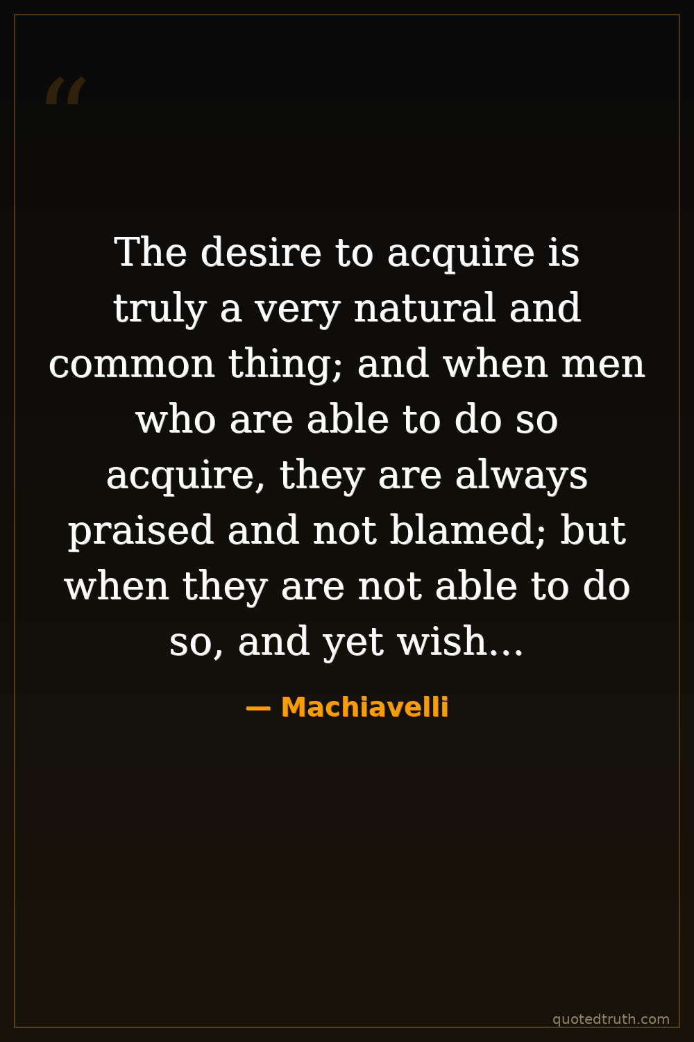 The desire to acquire is truly a very natural and common thing; and when men who are able to do so acquire, they are always praised and not blamed; but when they are not able to do so, and yet wish to do so, then there is blame and error.