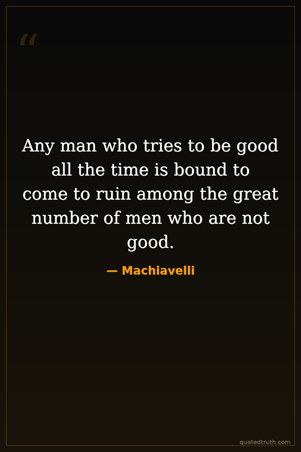 Any man who tries to be good all the time is bound to come to ruin among the great number of men who are not good.