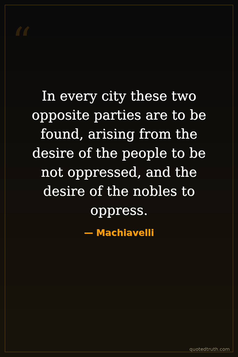 In every city these two opposite parties are to be found, arising from the desire of the people to be not oppressed, and the desire of the nobles to oppress.