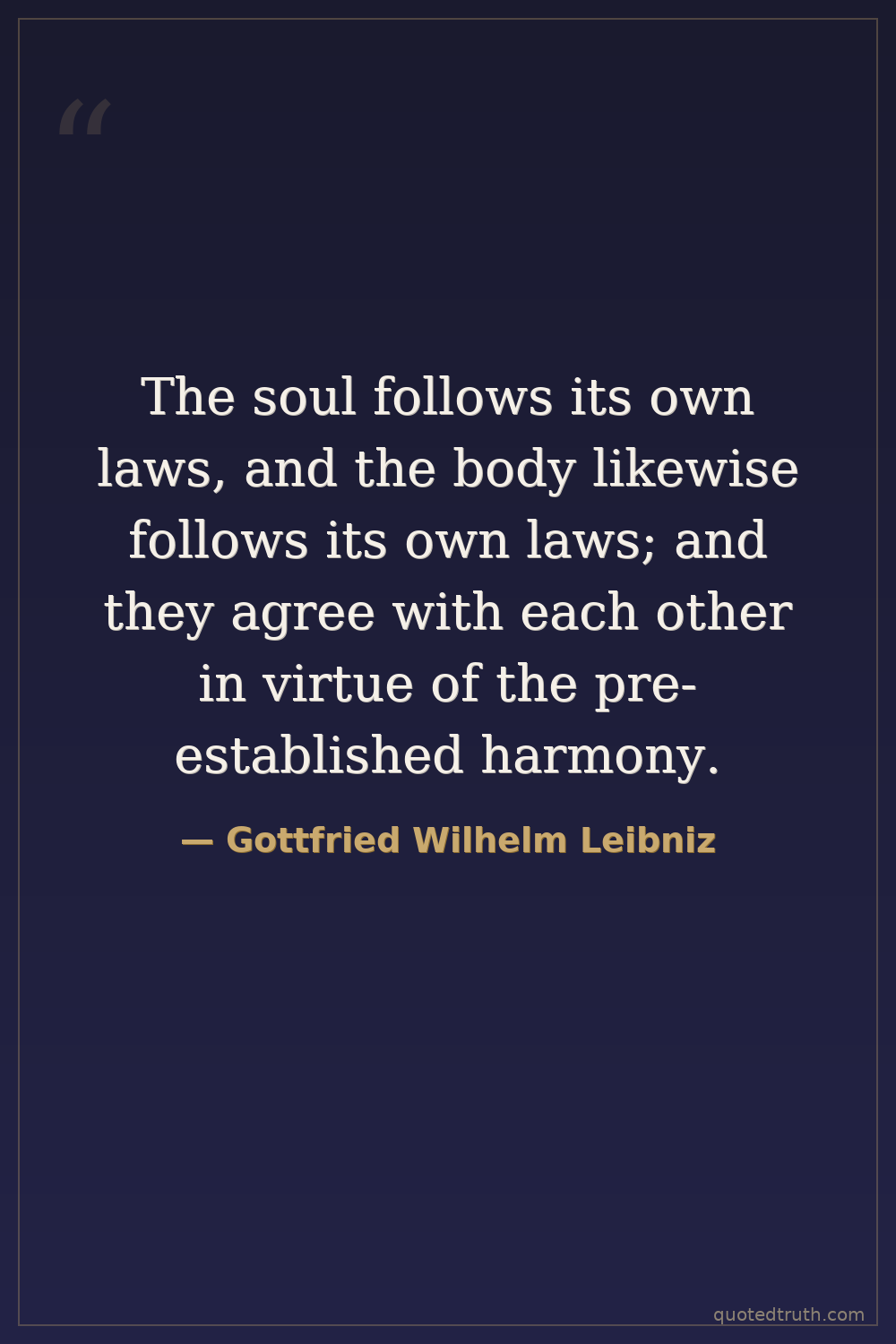 The soul follows its own laws, and the body likewise follows its own laws; and they agree with each other in virtue of the pre-established harmony.