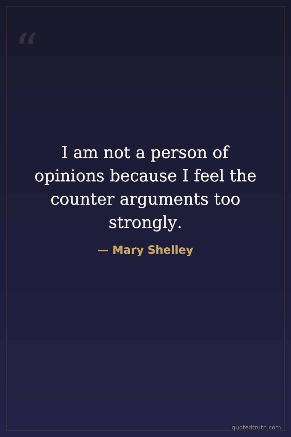 From The Journals of Mary Shelley, a self-aware reflection on her intellectual temperament.