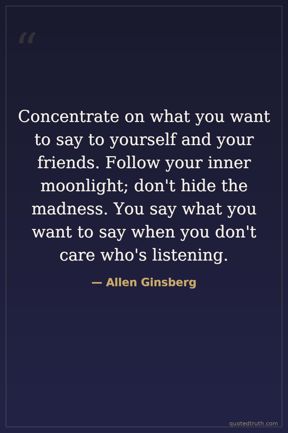 Concentrate on what you want to say to yourself and your friends. Follow your inner moonlight; don't hide the madness. You say what you want to say when you don't care who's listening.