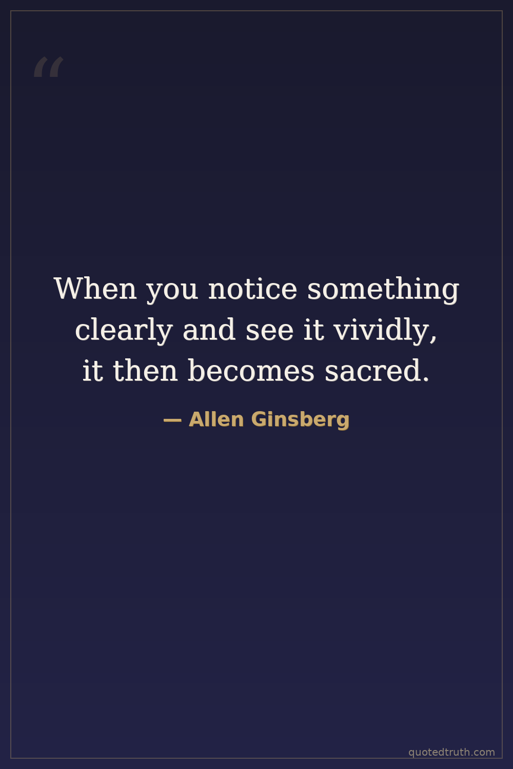 When you notice something clearly and see it vividly, it then becomes sacred.