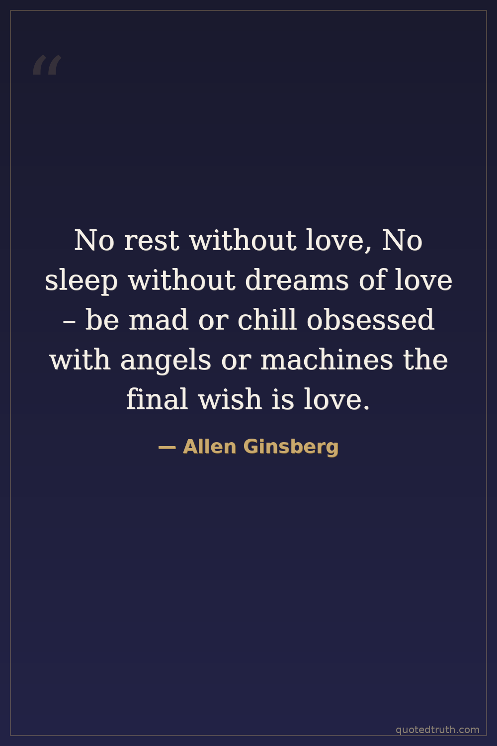 No rest without love, No sleep without dreams of love – be mad or chill obsessed with angels or machines the final wish is love.