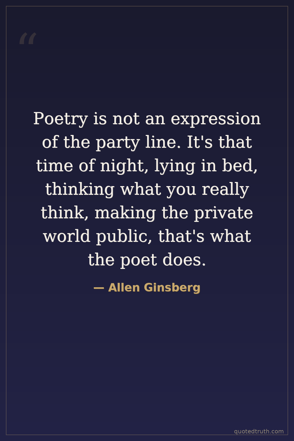 Poetry is not an expression of the party line. It's that time of night, lying in bed, thinking what you really think, making the private world public, that's what the poet does.