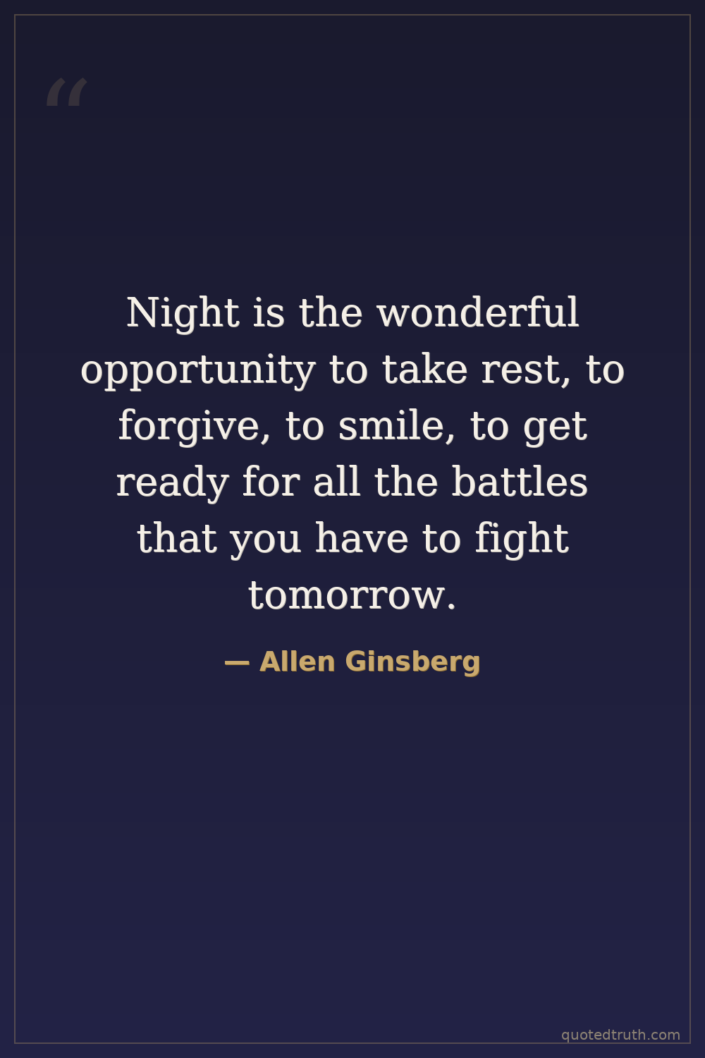 Night is the wonderful opportunity to take rest, to forgive, to smile, to get ready for all the battles that you have to fight tomorrow.