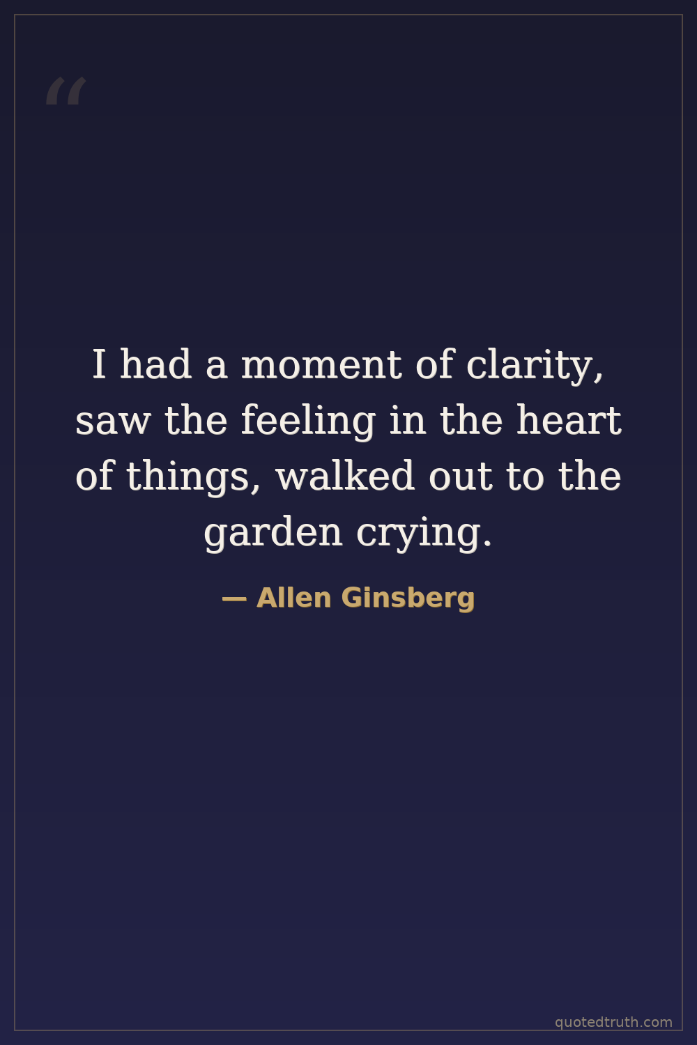 I had a moment of clarity, saw the feeling in the heart of things, walked out to the garden crying.