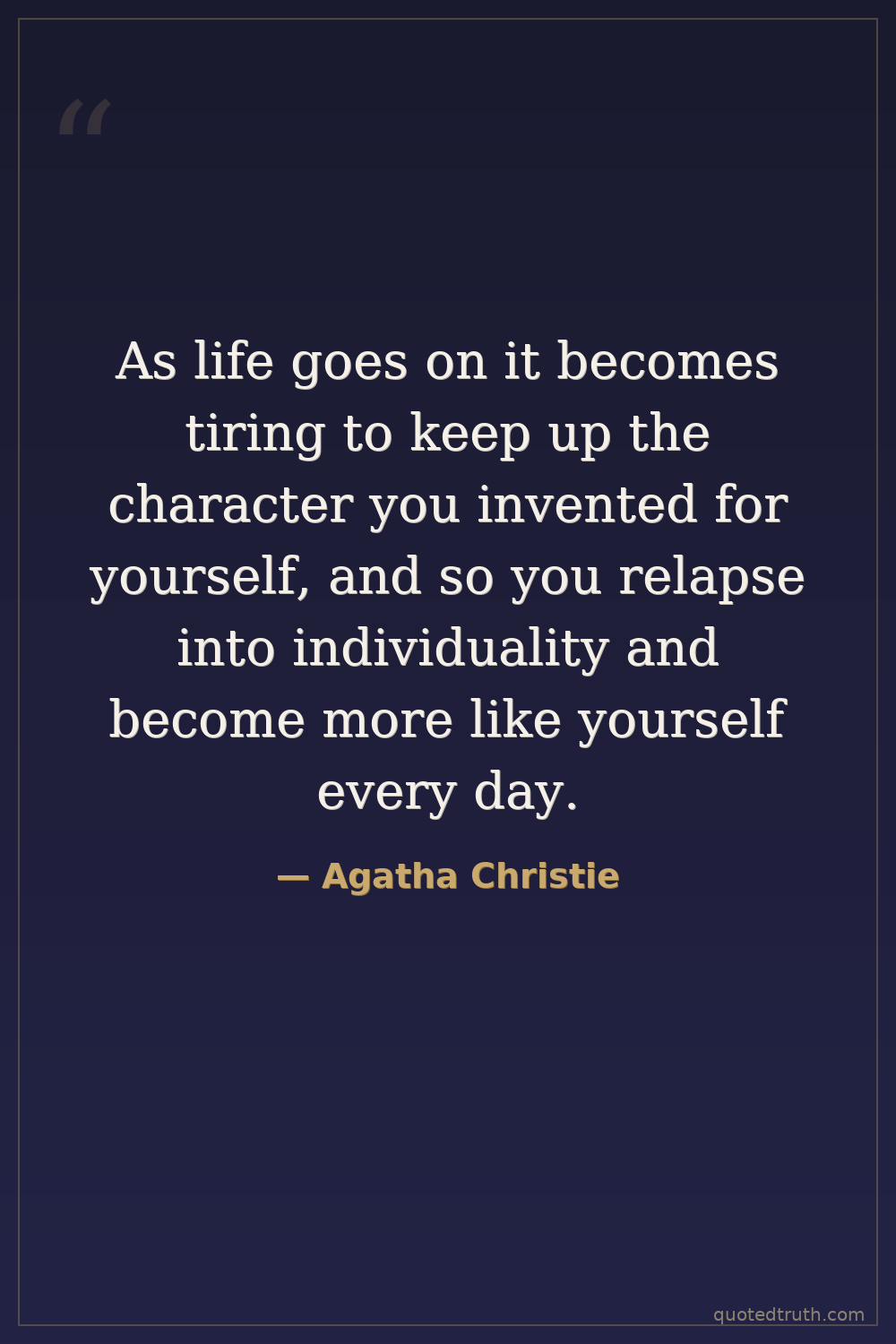 As life goes on it becomes tiring to keep up the character you invented for yourself, and so you relapse into individuality and become more like yourself every day.