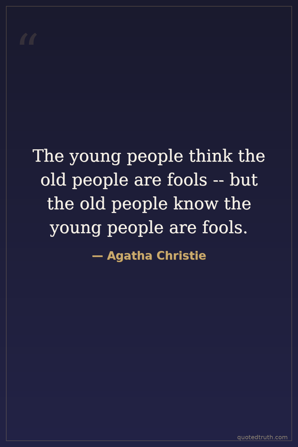 The young people think the old people are fools -- but the old people know the young people are fools.