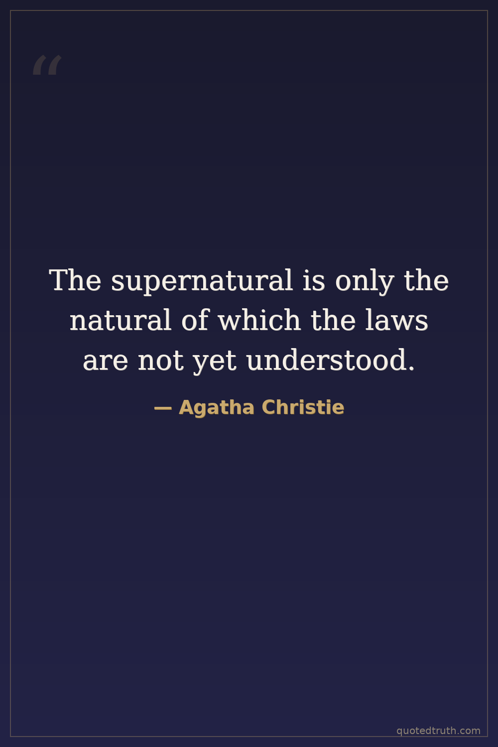 The supernatural is only the natural of which the laws are not yet understood.