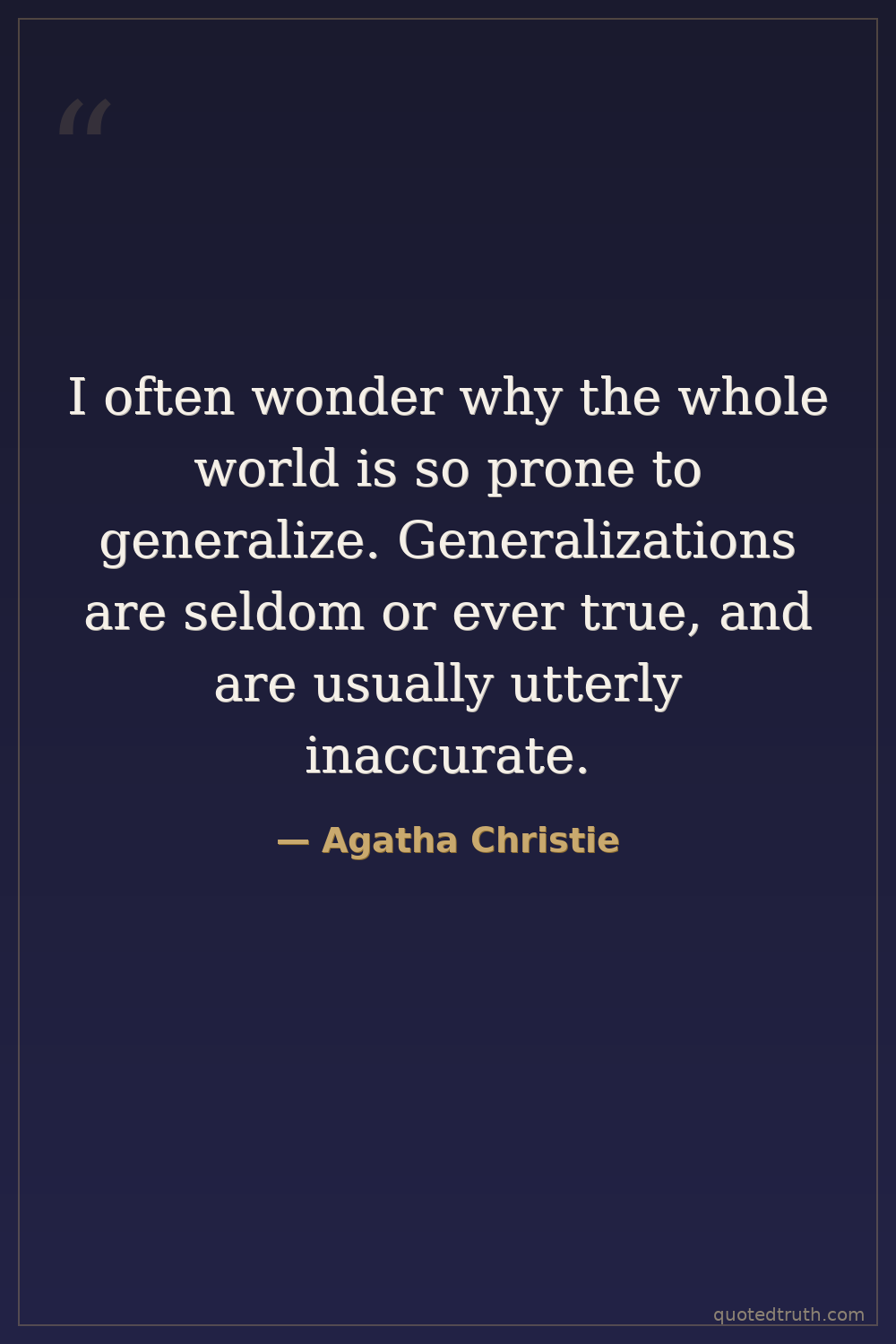 I often wonder why the whole world is so prone to generalize. Generalizations are seldom or ever true, and are usually utterly inaccurate.
