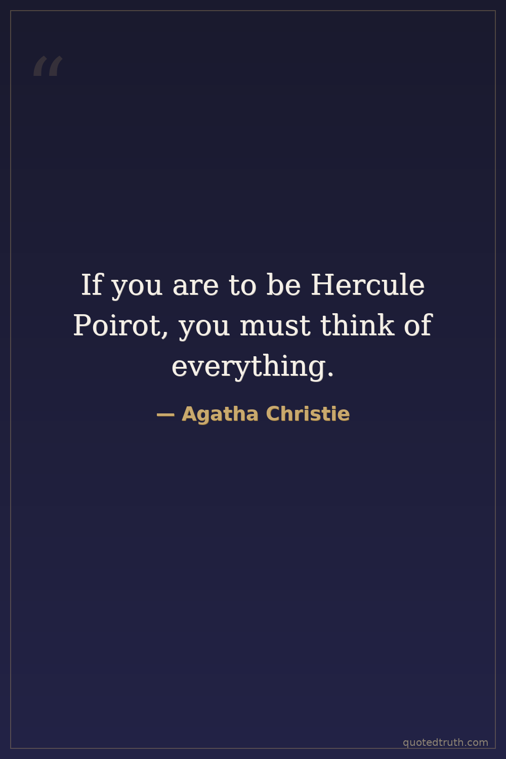 If you are to be Hercule Poirot, you must think of everything.
