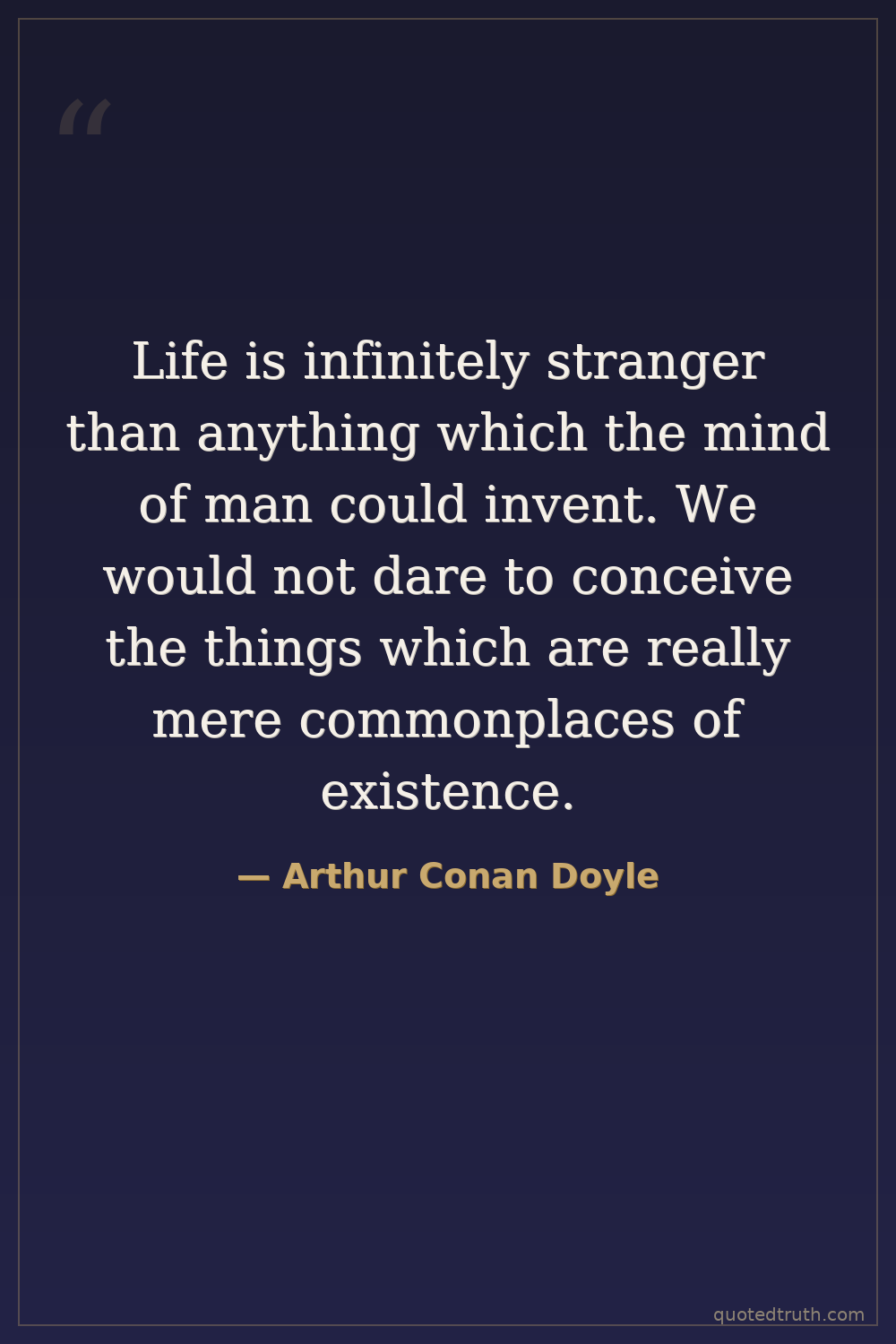 Life is infinitely stranger than anything which the mind of man could invent. We would not dare to conceive the things which are really mere commonplaces of existence.