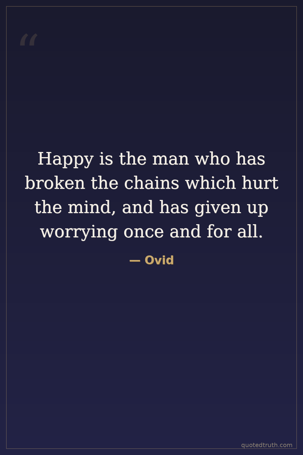 Happy is the man who has broken the chains which hurt the mind, and has given up worrying once and for all.
