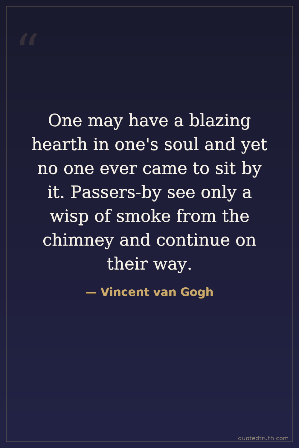 One may have a blazing hearth in one's soul and yet no one ever came to sit by it. Passers-by see only a wisp of smoke from the chimney and continue on their way.