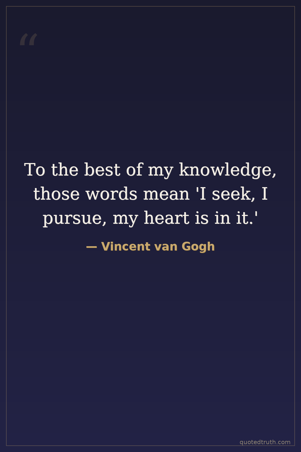 Letter to his brother Theo, referring to the meaning of 'Je cherche, je poursuis, j'y suis'