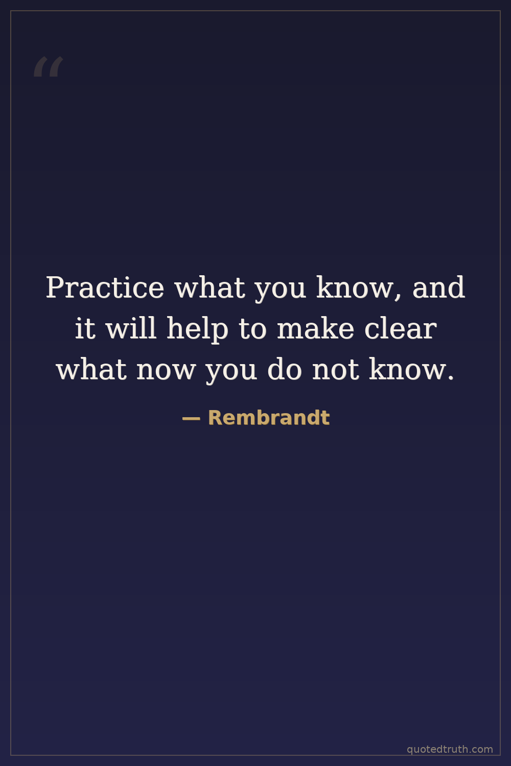 Practice what you know, and it will help to make clear what now you do not know.