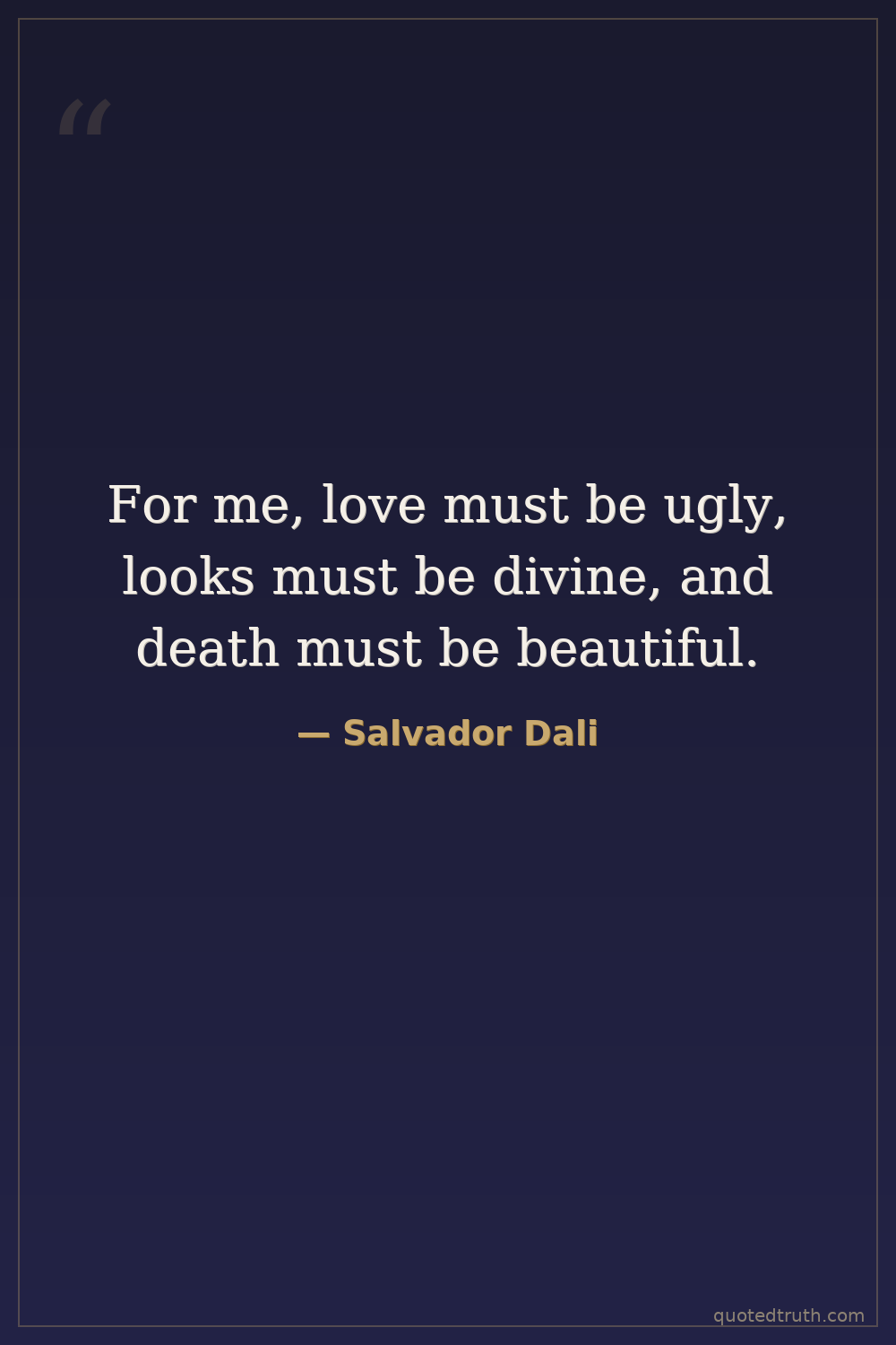 For me, love must be ugly, looks must be divine, and death must be beautiful.