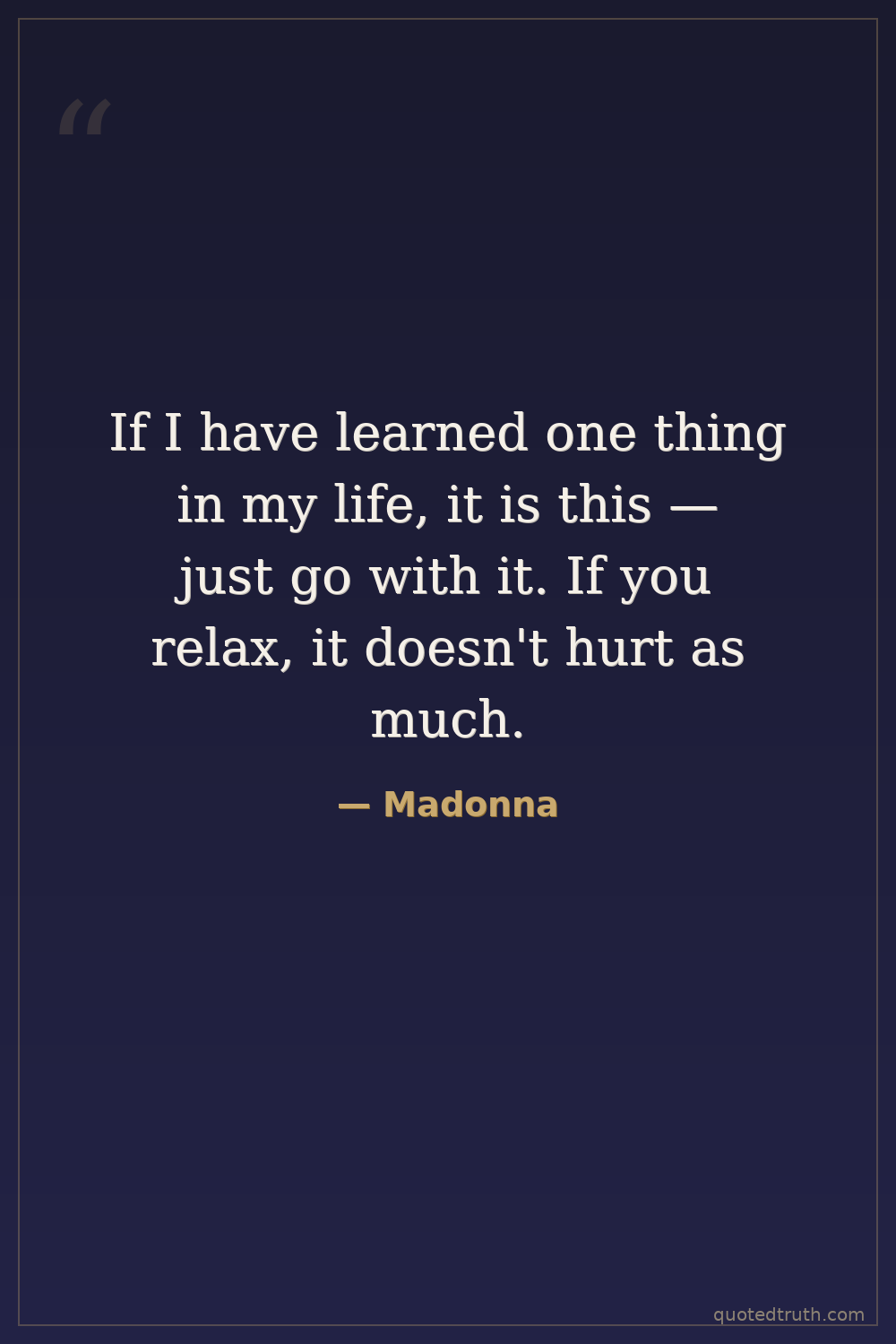 If I have learned one thing in my life, it is this — just go with it. If you relax, it doesn't hurt as much.