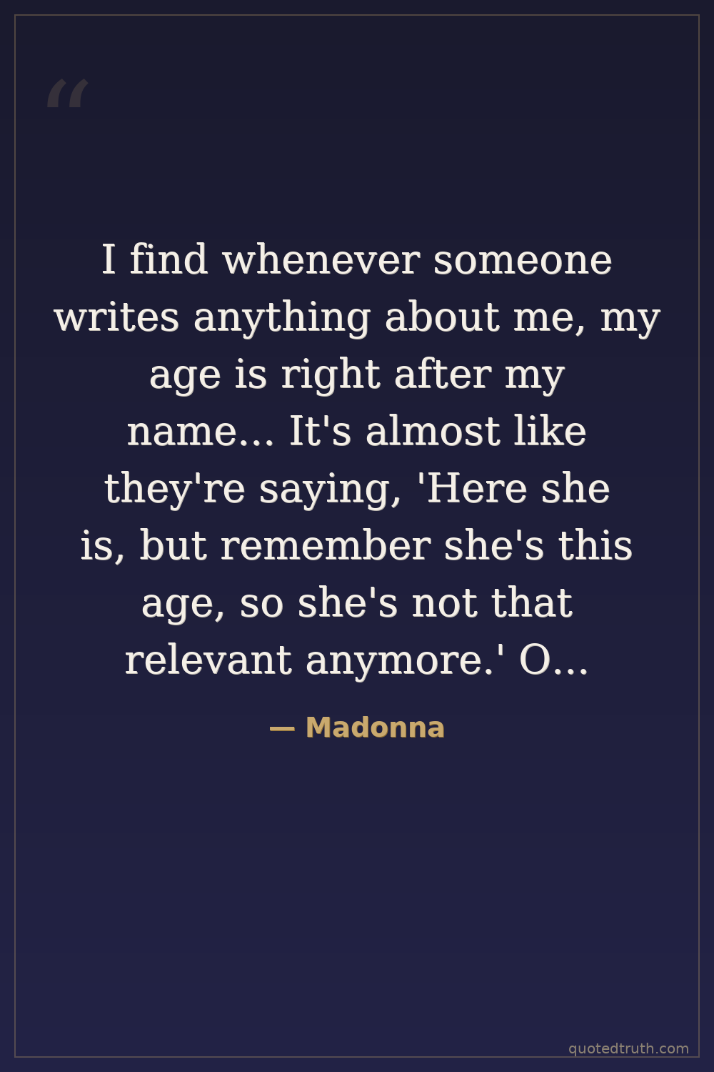 I find whenever someone writes anything about me, my age is right after my name... It's almost like they're saying, 'Here she is, but remember she's this age, so she's not that relevant anymore.' Or 'Let's punish her by reminding her and everyone else.' When you put someone's age down, you're limiting them.