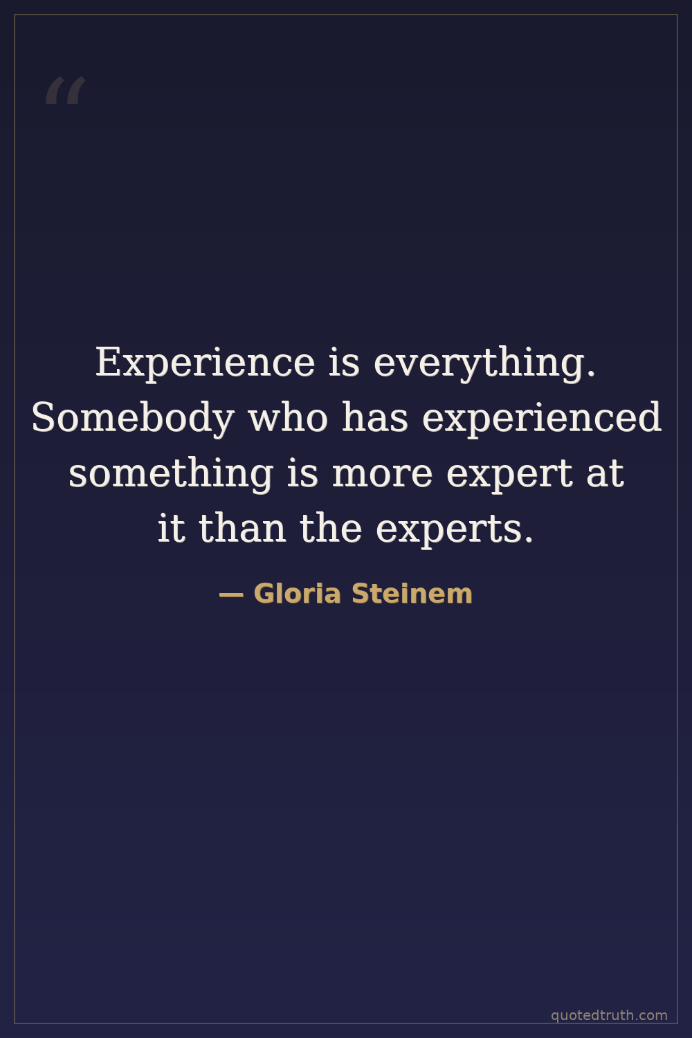 Experience is everything. Somebody who has experienced something is more expert at it than the experts.