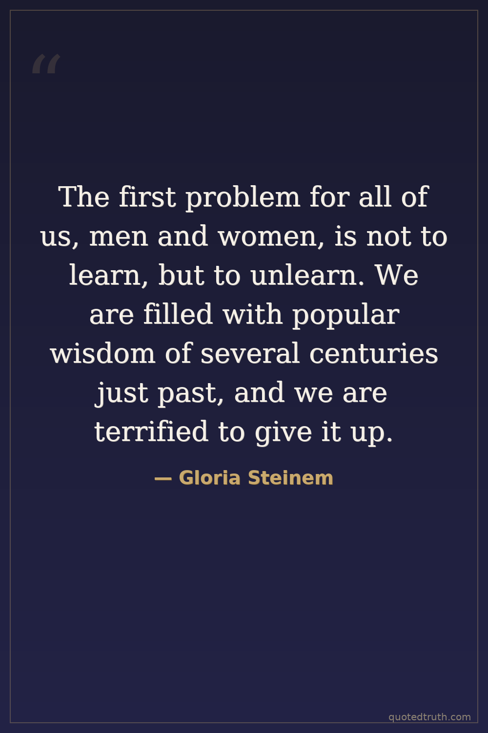 The first problem for all of us, men and women, is not to learn, but to unlearn. We are filled with popular wisdom of several centuries just past, and we are terrified to give it up.