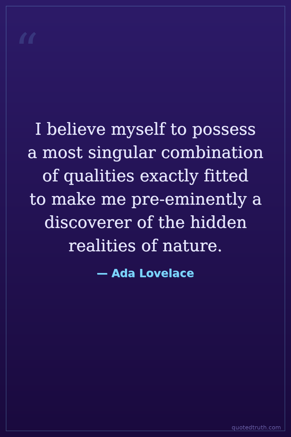 I believe myself to possess a most singular combination of qualities exactly fitted to make me pre-eminently a discoverer of the hidden realities of nature.