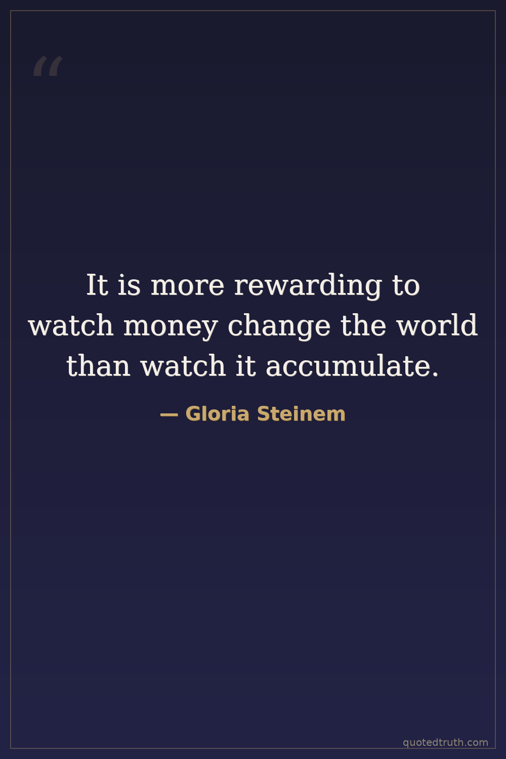 It is more rewarding to watch money change the world than watch it accumulate.