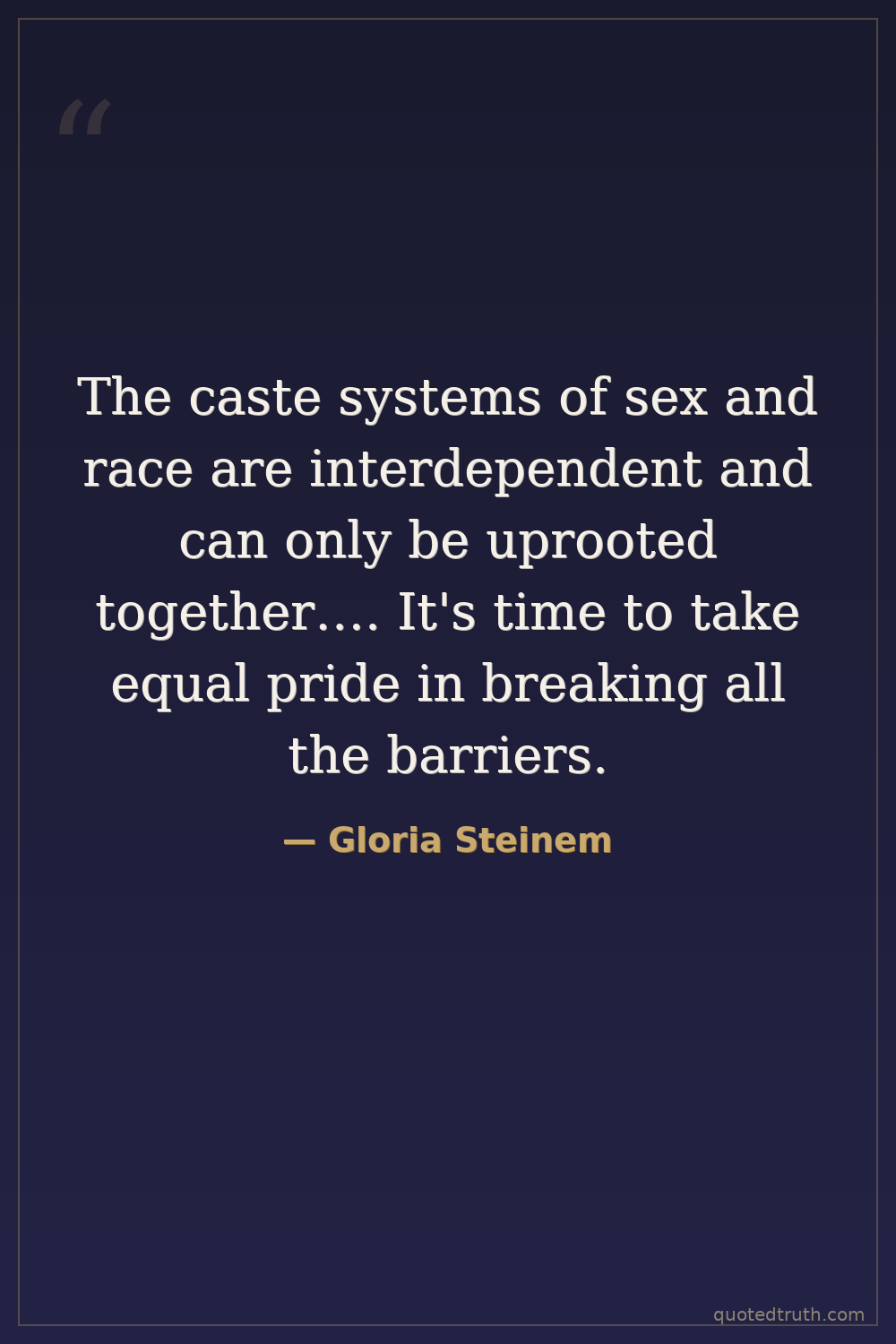 The caste systems of sex and race are interdependent and can only be uprooted together…. It's time to take equal pride in breaking all the barriers.