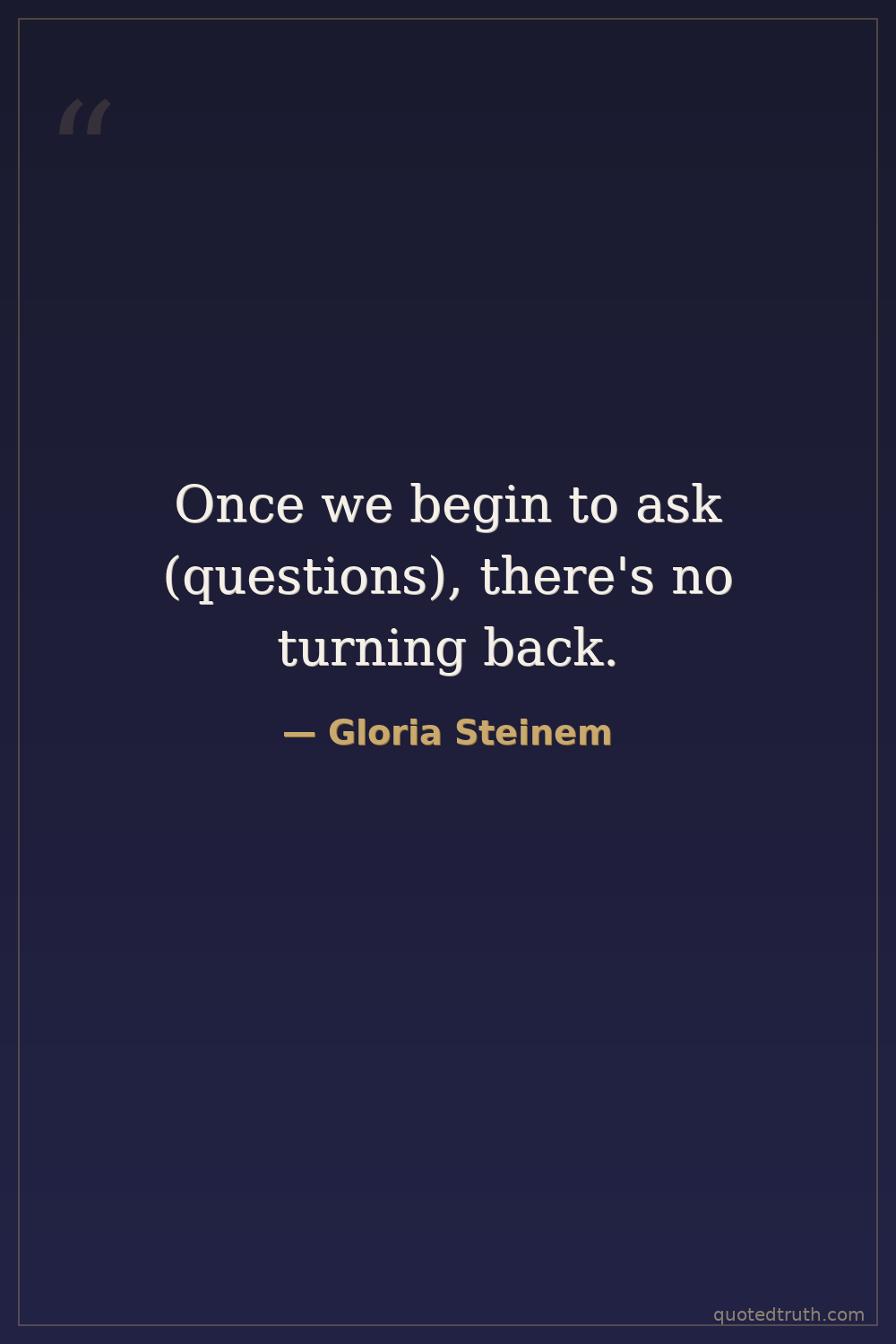 Once we begin to ask (questions), there's no turning back.