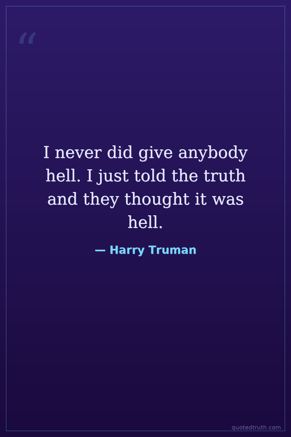 I never did give anybody hell. I just told the truth and they thought it was hell.