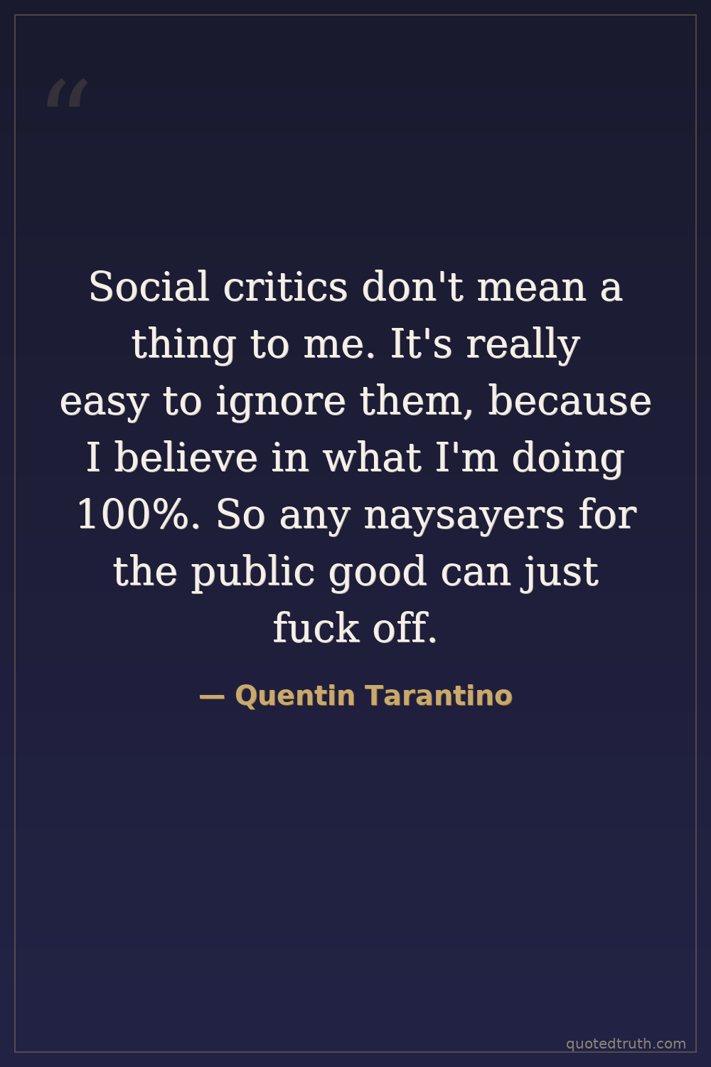 Social critics don't mean a thing to me. It's really easy to ignore them, because I believe in what I'm doing 100%. So any naysayers for the public good can just fuck off.