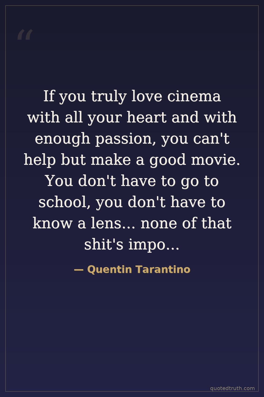 If you truly love cinema with all your heart and with enough passion, you can't help but make a good movie. You don't have to go to school, you don't have to know a lens... none of that shit's important.