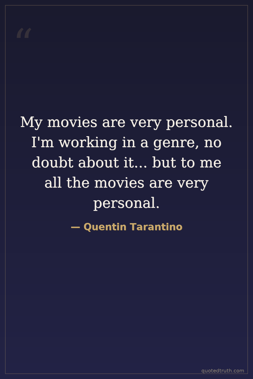 My movies are very personal. I'm working in a genre, no doubt about it... but to me all the movies are very personal.