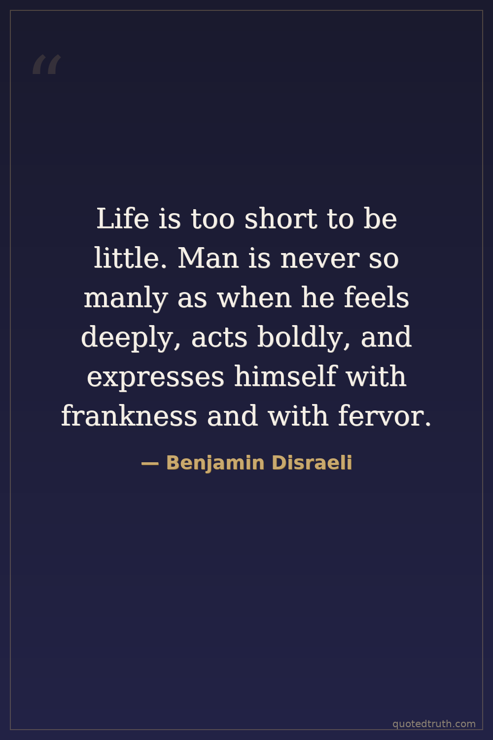 Life is too short to be little. Man is never so manly as when he feels deeply, acts boldly, and expresses himself with frankness and with fervor.