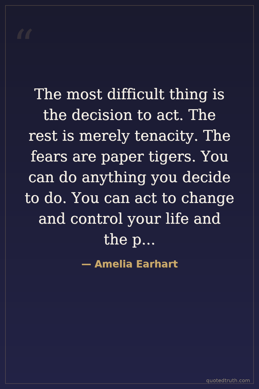 The most difficult thing is the decision to act. The rest is merely tenacity. The fears are paper tigers. You can do anything you decide to do. You can act to change and control your life and the procedure. The process is its own reward.