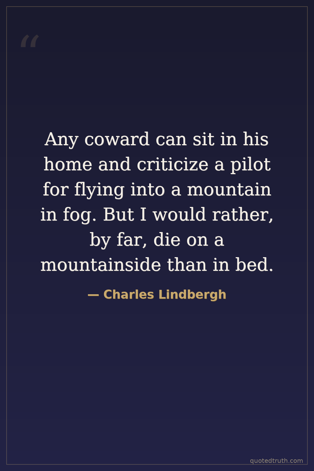 Any coward can sit in his home and criticize a pilot for flying into a mountain in fog. But I would rather, by far, die on a mountainside than in bed.