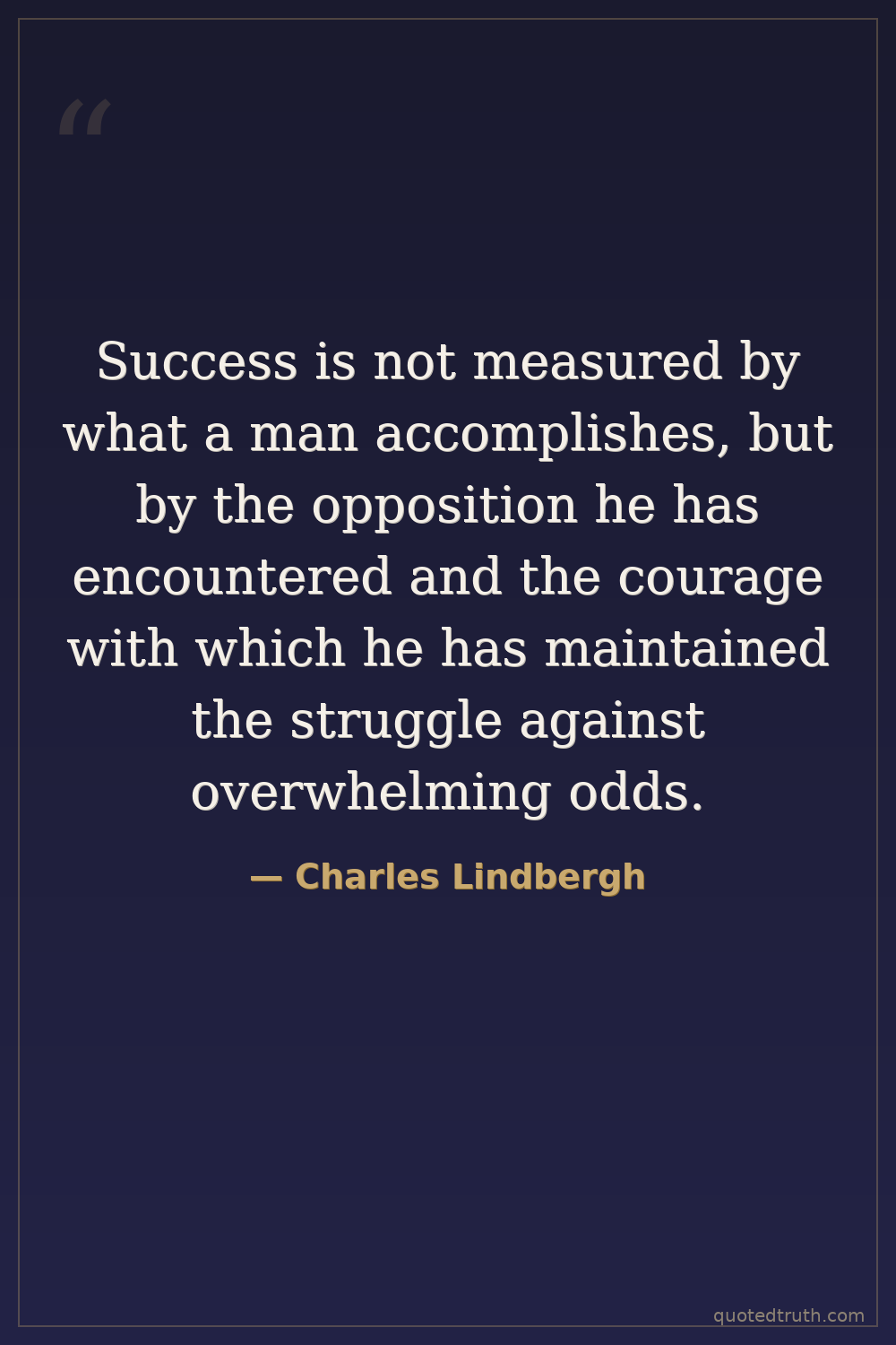 Success is not measured by what a man accomplishes, but by the opposition he has encountered and the courage with which he has maintained the struggle against overwhelming odds.