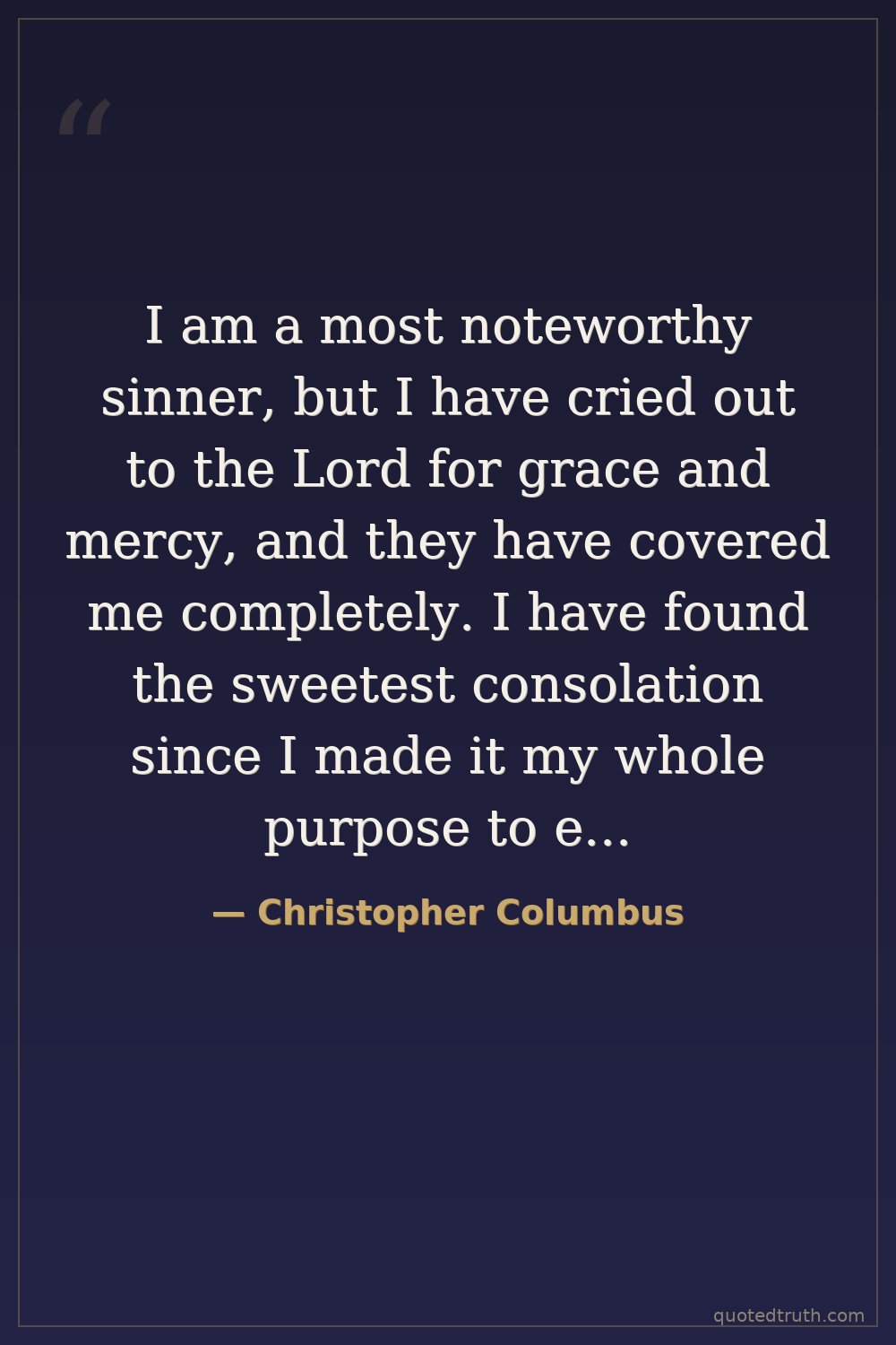 Controversial"It was the Lord who put into my mind (I could feel His hand upon me) the fact that it would be possible to sail from here to the Indies. All who heard of my project rejected it with laughter, ridiculi…"