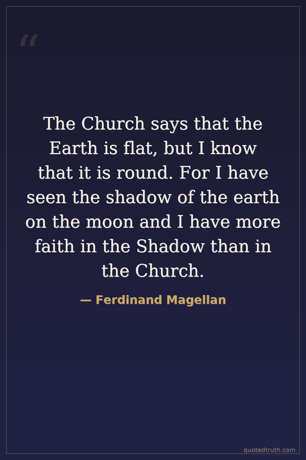 Widely attributed to Magellan, but considered misattributed and likely originated from Robert Green Ingersoll's essay 'Individuality' (1873). The belief in a round Earth was common among educated people in Magellan's time, and the Church did not officially teach a flat Earth.