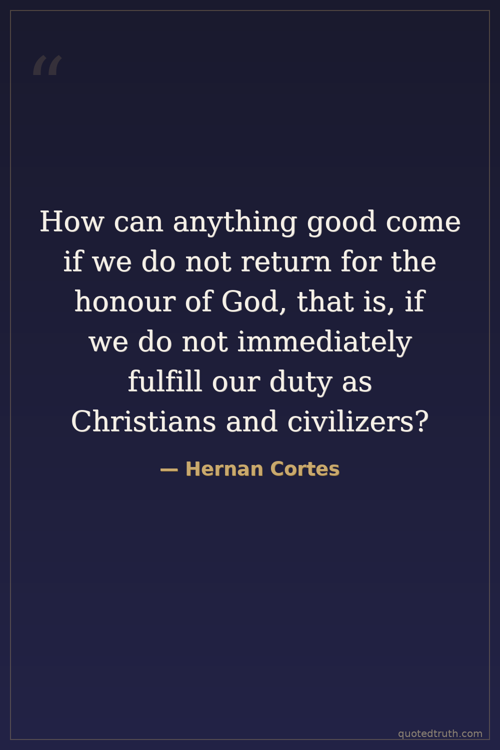 How can anything good come if we do not return for the honour of God, that is, if we do not immediately fulfill our duty as Christians and civilizers?