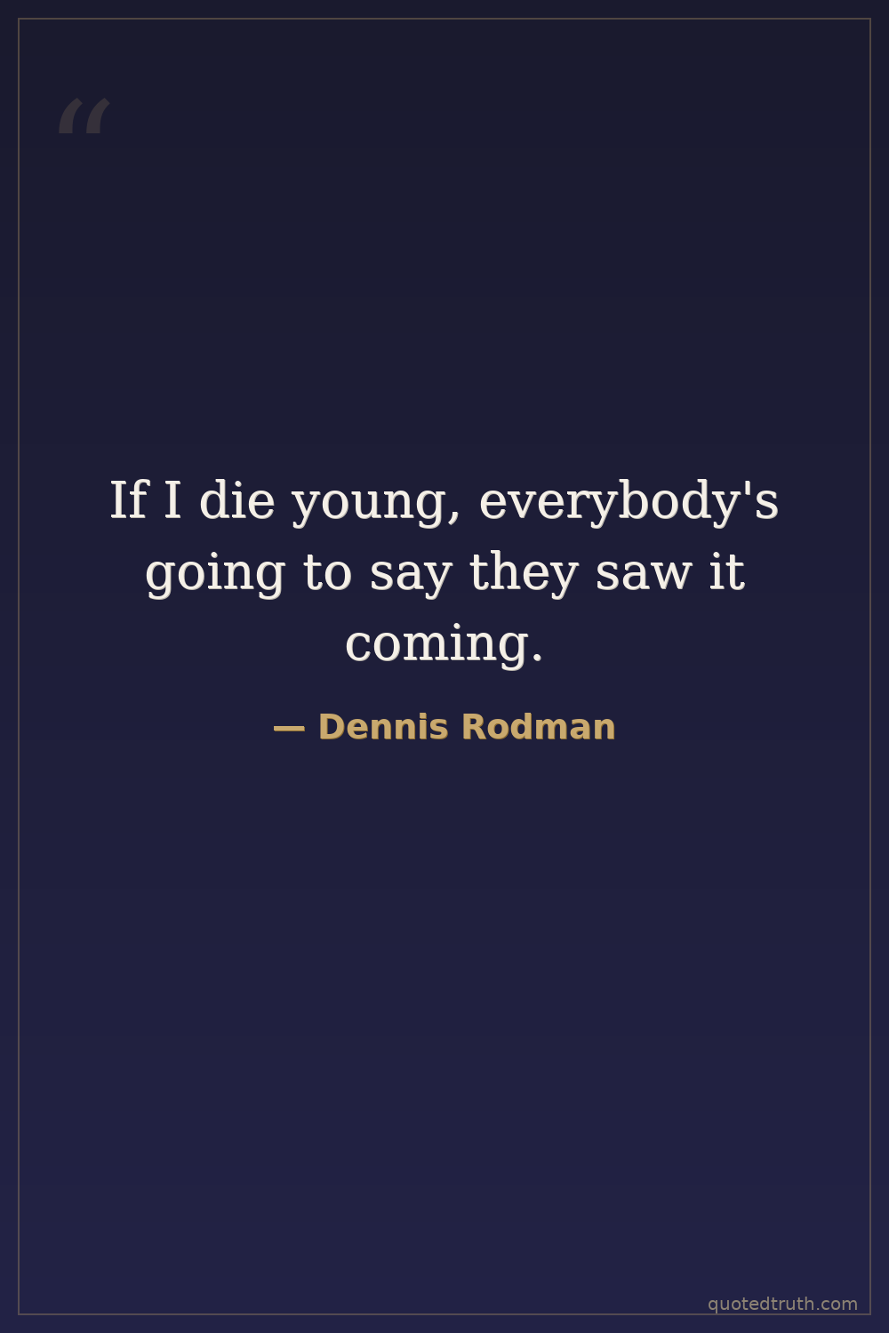 If I die young, everybody's going to say they saw it coming.